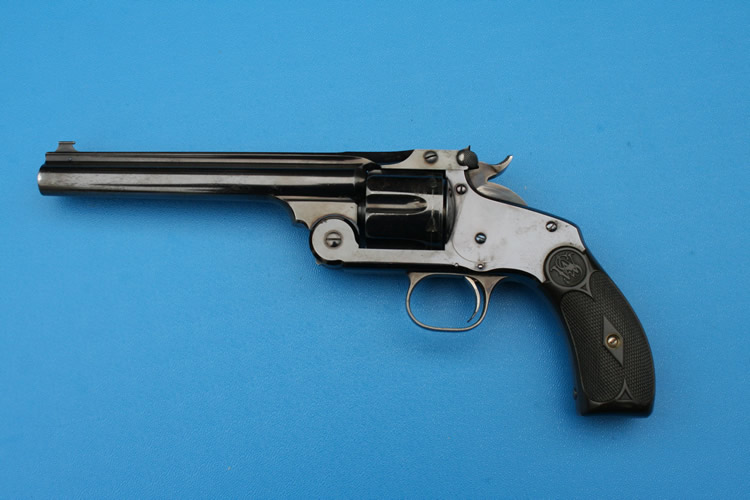 Manufactured from 1887 to 1910 similar to the New Model No3 revolver, this revolver with the 38-44 version had their individual serial number range 1-4333 and were one of the most popular target revolvers of the period.